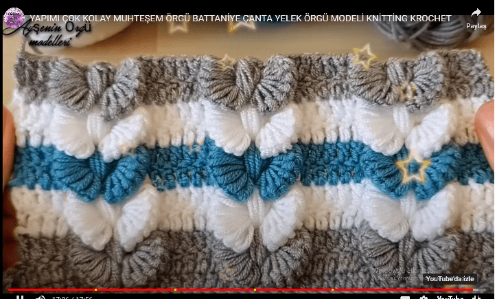 Tığ işi örebileceğiniz çok şık bir örgü deseni.Bu örgü deseni ile başta bebek battaniyesi olmak üzere bir çok modelde kullanabilirsiniz.