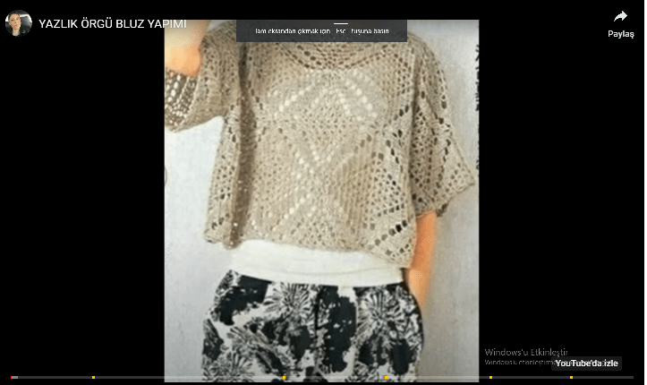 Kare motiflerden oluşan tığ ile örülmüş şahane bir örgü yazlık bluz modeli