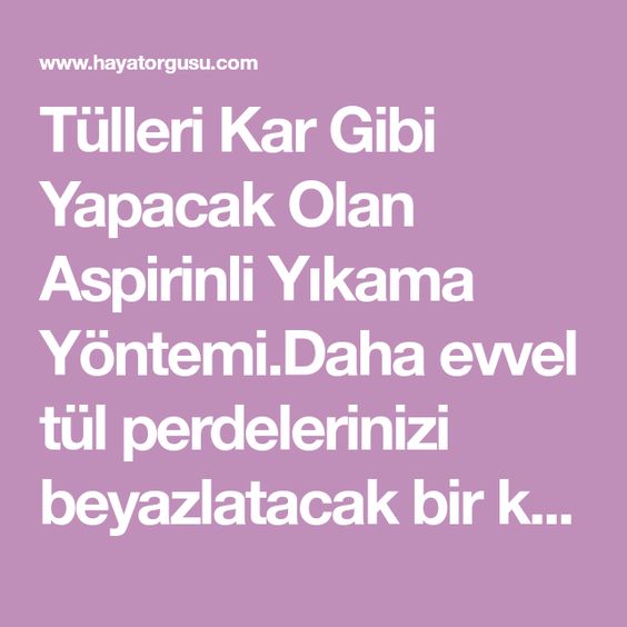 Gelelim bugünkü konumuza yani tül perdeleri beyazlatmada aspirini nasıl kullanacaksınız?İnanın çok kolay ve de çok etkili bir yöntem hemen denemenizi tavsiye ediyorum.