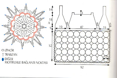 ÖRGÜYE VERİLEN YUVARLAK MOTİFLE BAŞLANIR ENİNE OLARAK 9 MOTİF BOYUNA 5 MOTİFLE PARÇALAR EKLENEREK DEVAM EDER